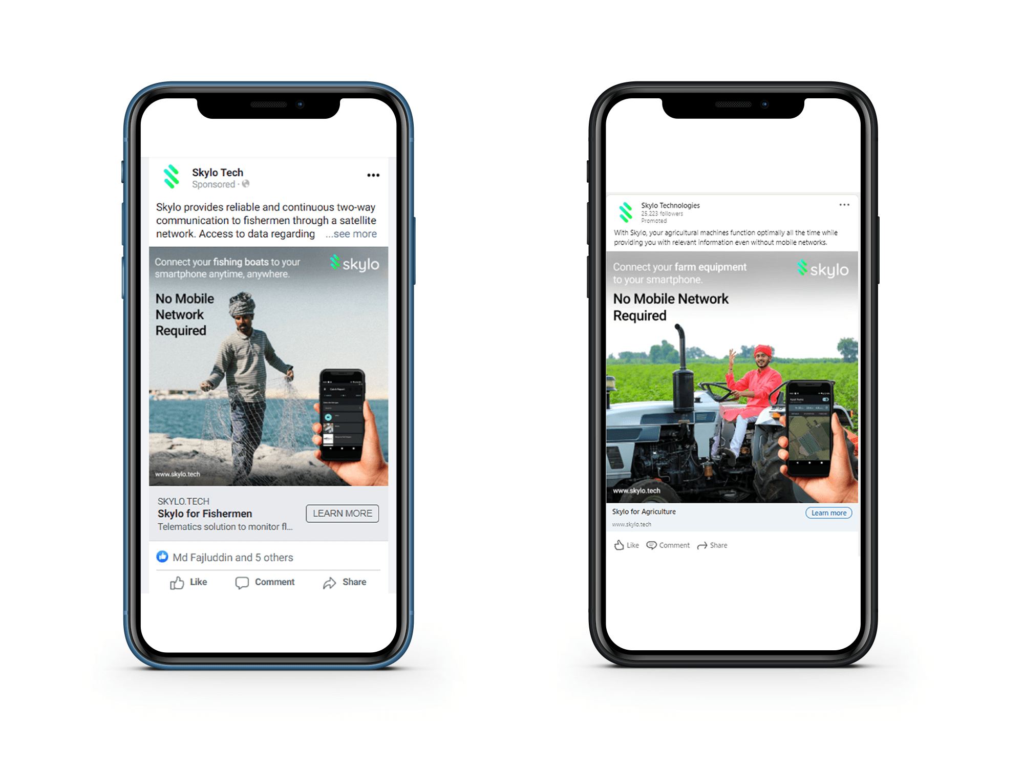 Skylo is a unique case study, the approach for which we spent many days (and nights). The product has B2C benefits (farmers, fishermen, truck drivers), but the decision-maker is heavily B2B. To reconcile this, our organic and paid marketing campaigns involve messaging that tackle both fronts effectively. We complemented our paid marketing efforts through PR releases, SEO, organic growth hacking, and creating branding assets. Today we receive images of boats in various ports using the Skylo Hub, and it puts a collective smile on our faces!
